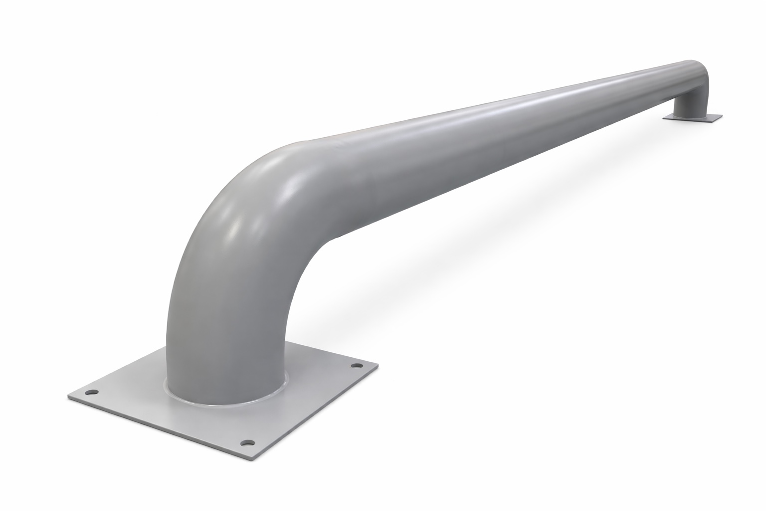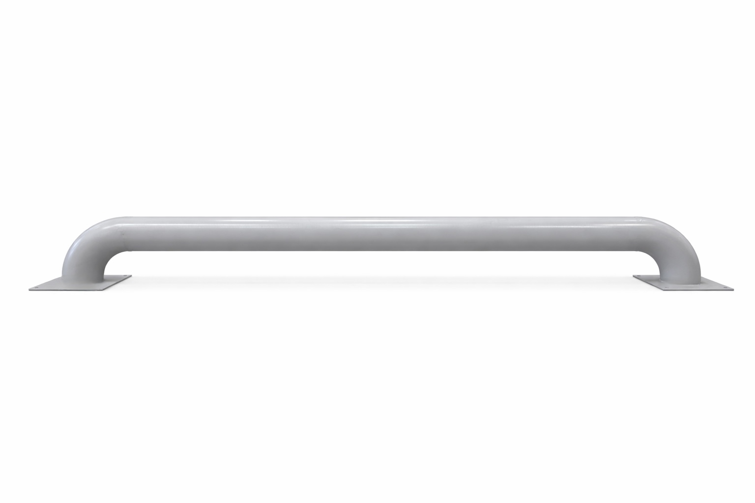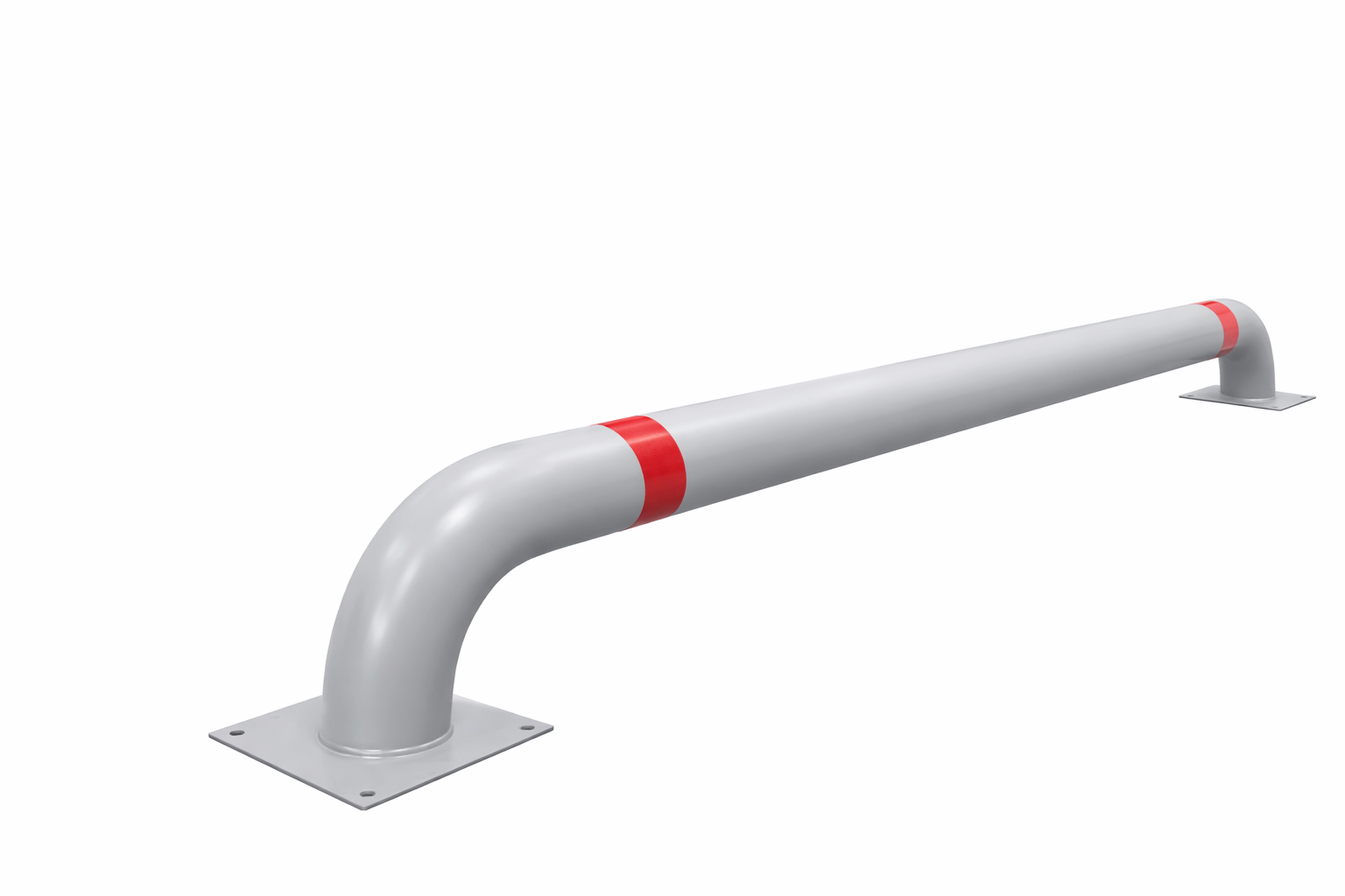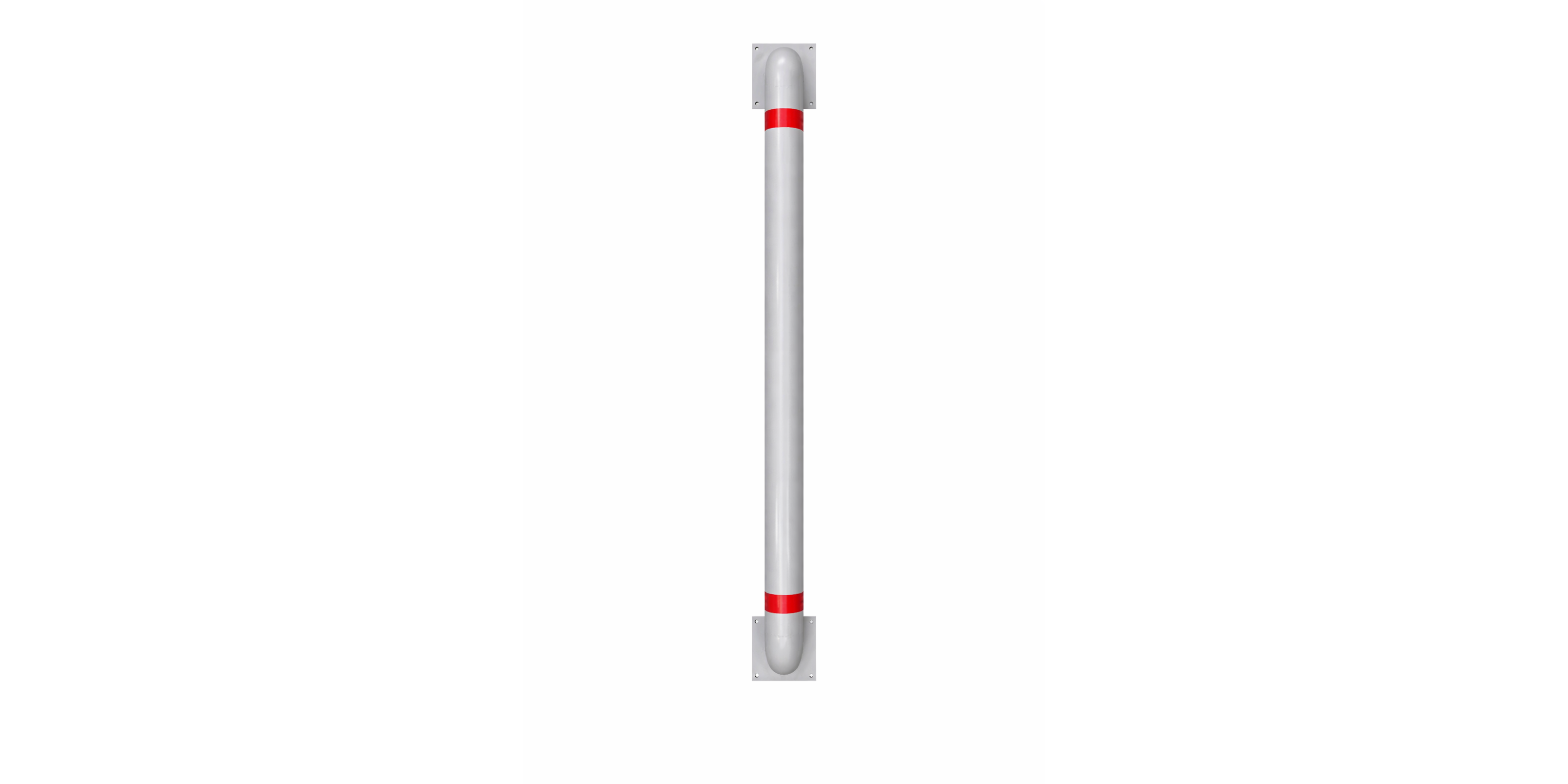 В стандартном исполнении покрытие — порошковая краска серого цвета (RAL 7040 мм) и красные светоотражающие наклейки. Но можем изготовить любого другого цвета по каталогу RAL, цвет наклеек также может быть любым. Покрытие защищает металл от ржавчины, а светоотражающие элементы позволяют увидеть отбойники даже в темноте.